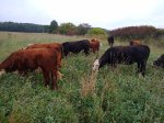 We have a small herd of American Aberdeen cattle, which are the original Angus cattle before being bred up in size with large beef animals. Our cow size averages about 900 lbs, compared to today’s larger Angus, which weigh about 1300 lbs. This smaller size increases efficiency and ability to finish on grass, which gives our customers a better product! You can learn more about American Aberdeen cattle by clicking here.